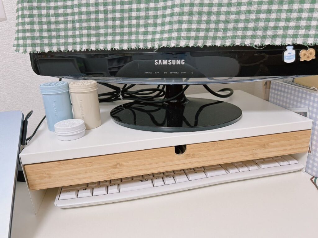 引き出しがついているので、メモ帳やハサミなど文房具を収納するのに使えて便利です!