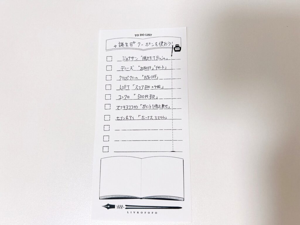 クーポンを取得するには誕生月の前月末までに登録する必要があり、誕生月に入ってからの登録になってしまった私は今回クーポンを受け取ることができませんでした。もっと早く知っていれば…💦