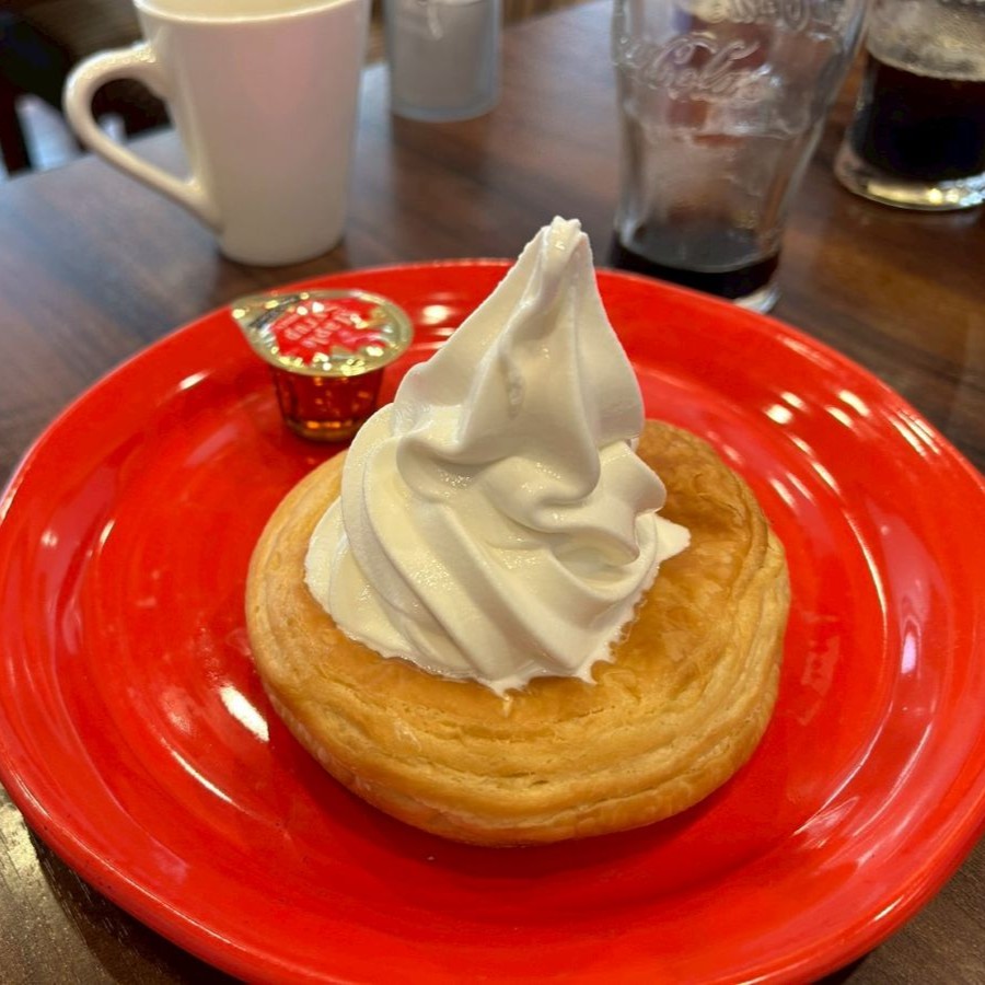 ジョナサンでは通常税込494円の「焼きたてデニッシュ ソフトクリーム添え」が税込109円になるクーポン、ミスドでは5%OFFクーポンを使いました。