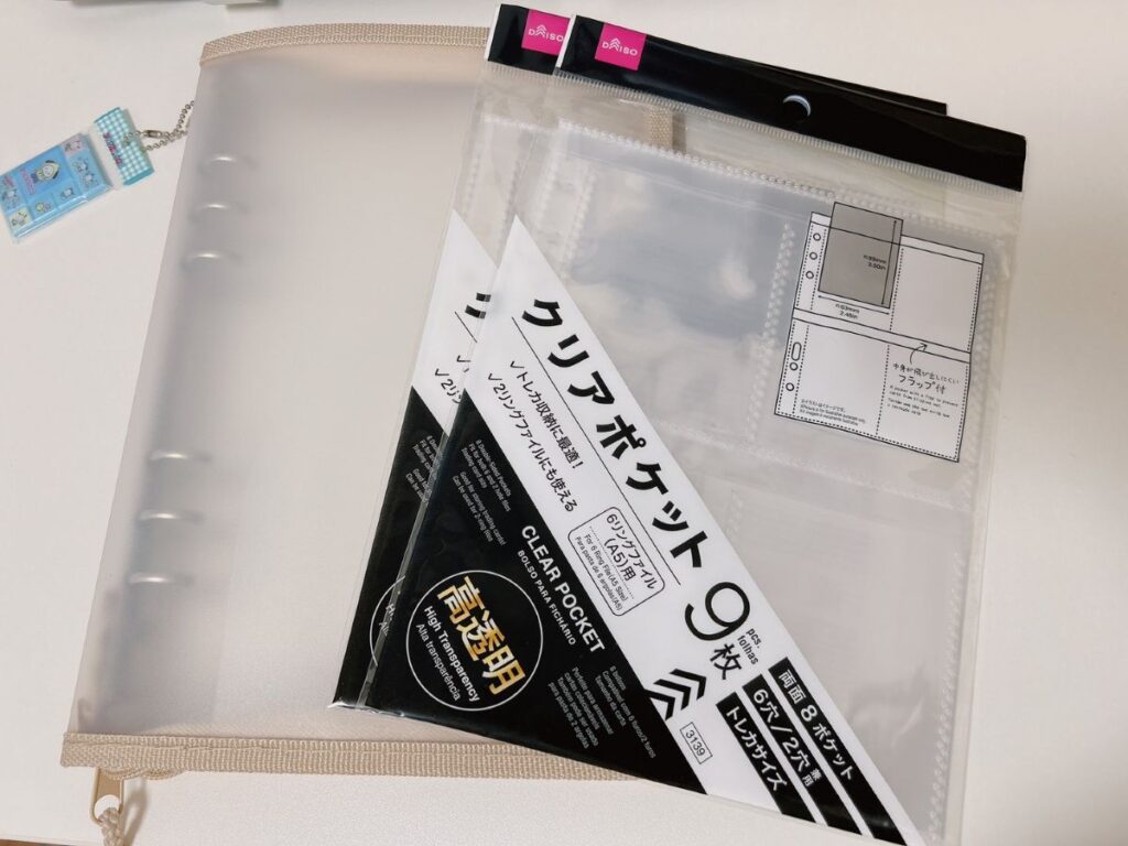 - 【ダイソー】クリアポケット(A5、6穴/2穴兼用、両面8ポケット、高透明、9枚)