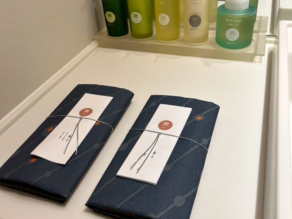 アメニティーも充実していて、ブラシなどはおしゃれな風呂敷に包まれていました✨