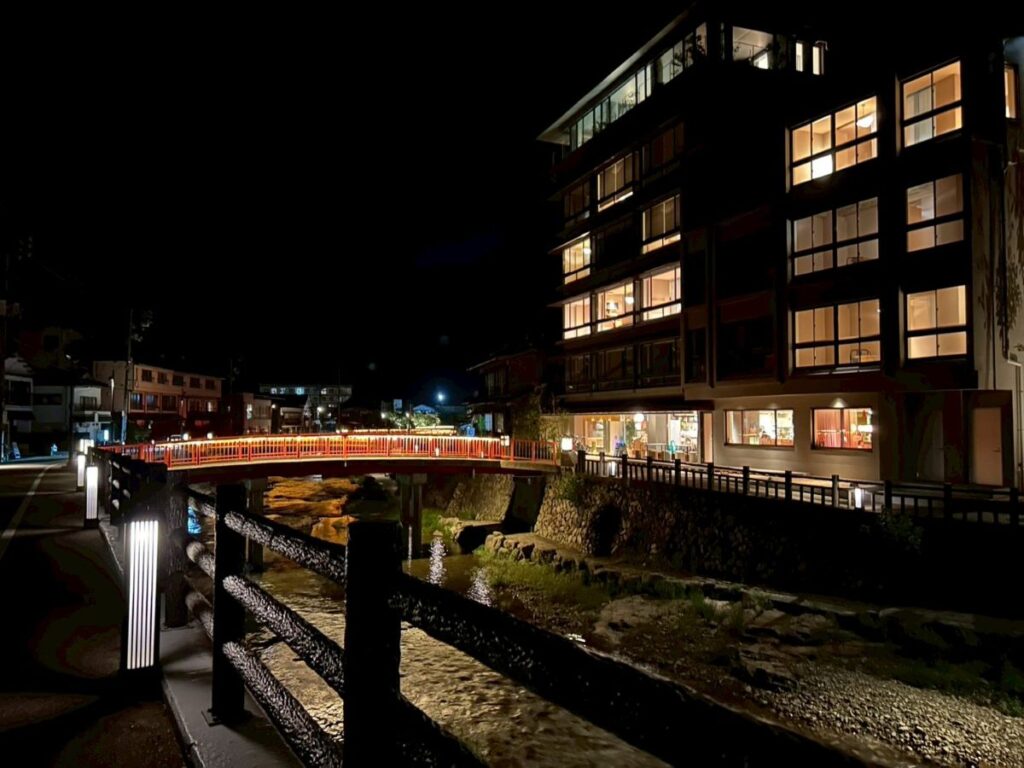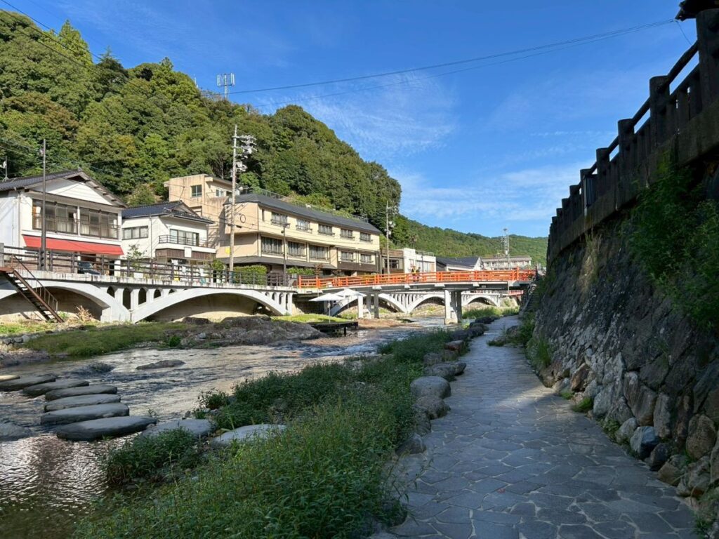 川沿いには橋や足湯、お店もいくつかあり、歩いているだけで楽しむことができます。