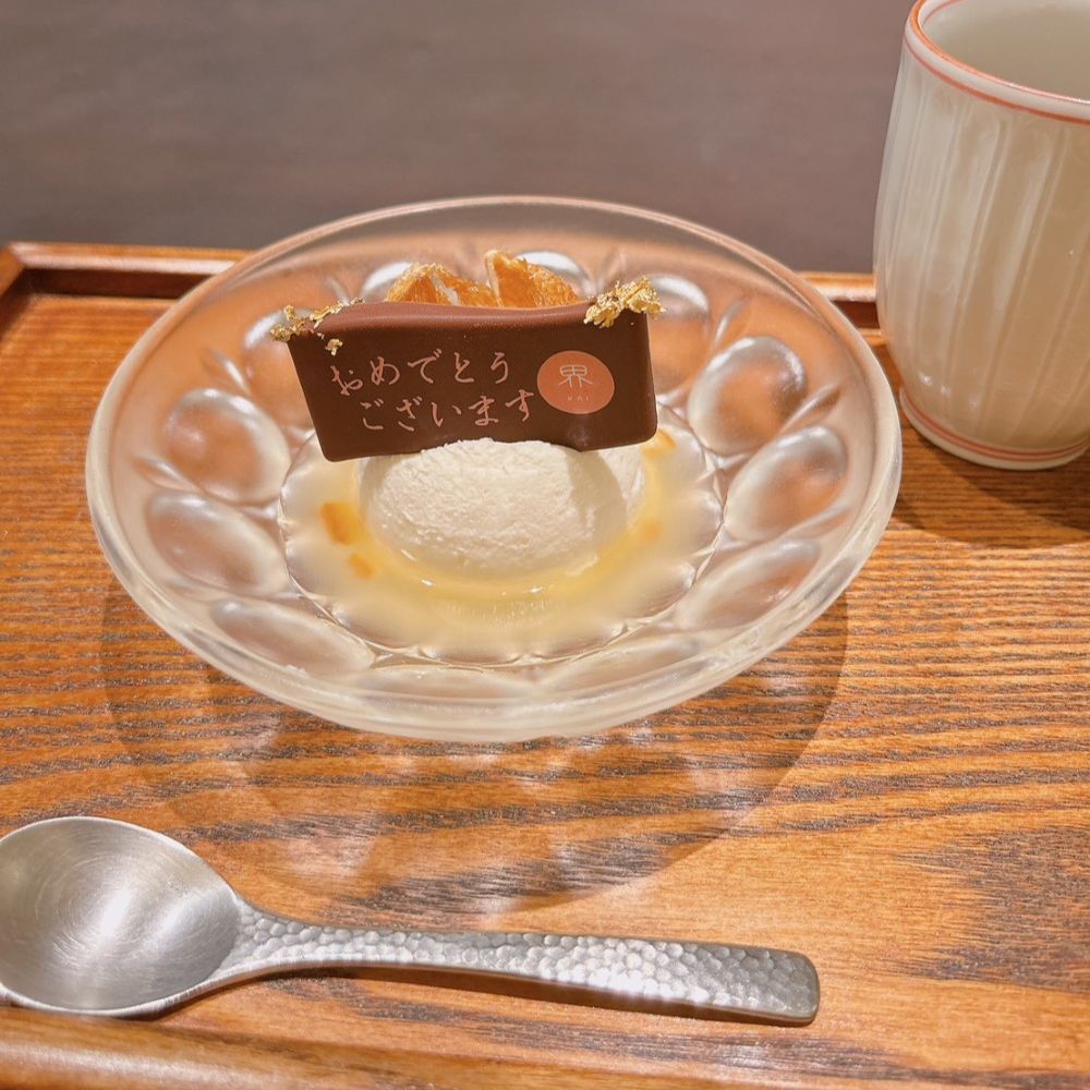 最後のデザートでは、ホテルから素敵なプチサプライズが!