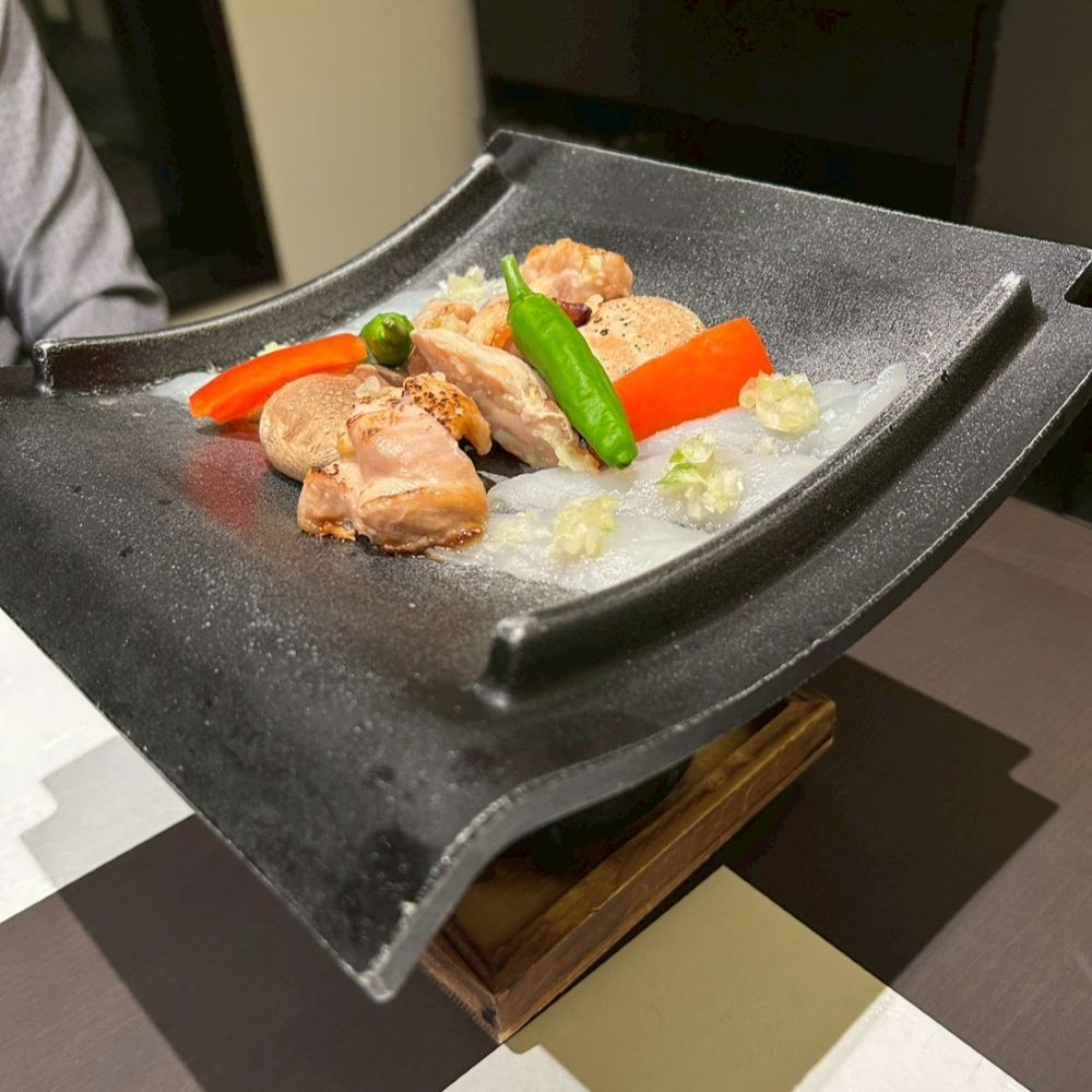 山口名物である瓦そばをモチーフに、瓦が鉄板の代わりとなった焼き物料理でした。