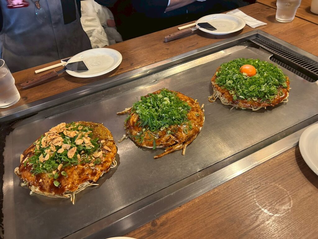 お好み焼きは4人で3枚注文しました。追加注文が不可だったので3枚で足りるか不安でしたが、みんな満腹に!