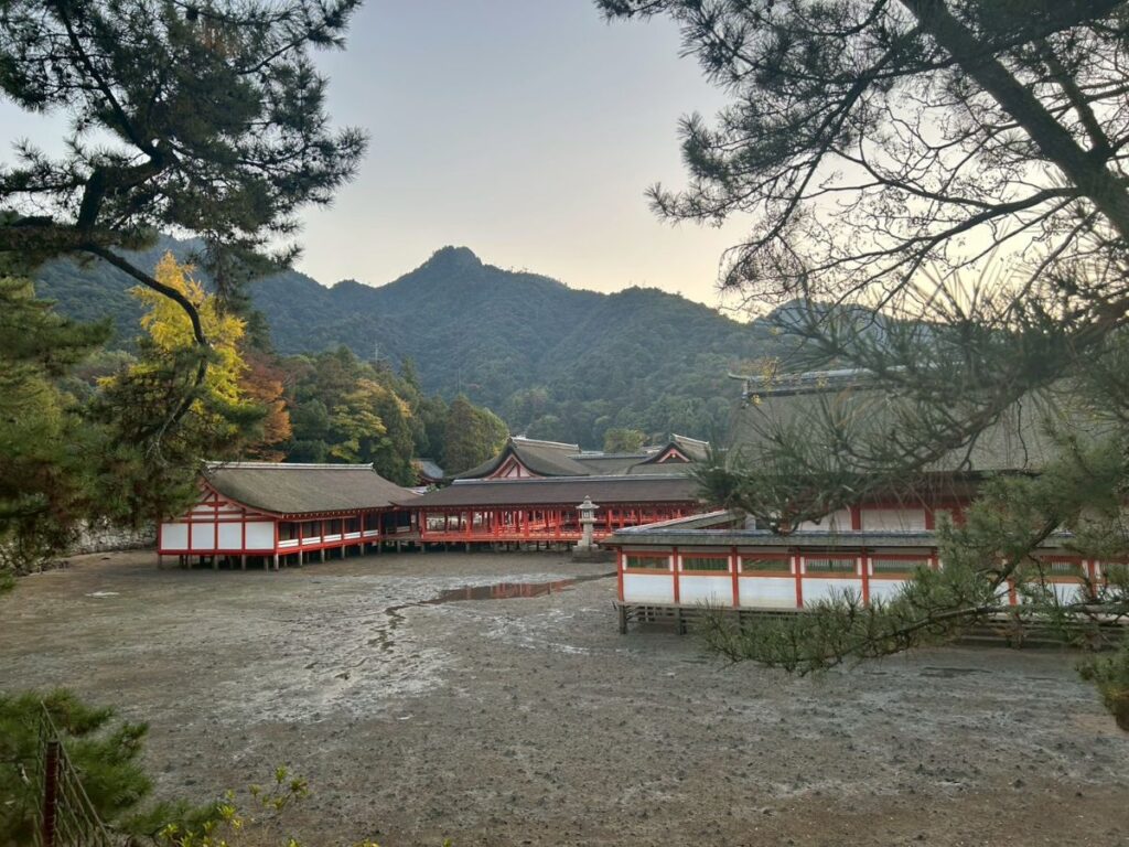 道中には厳島神社があり、この時間は干潮の景色を見ることができました。