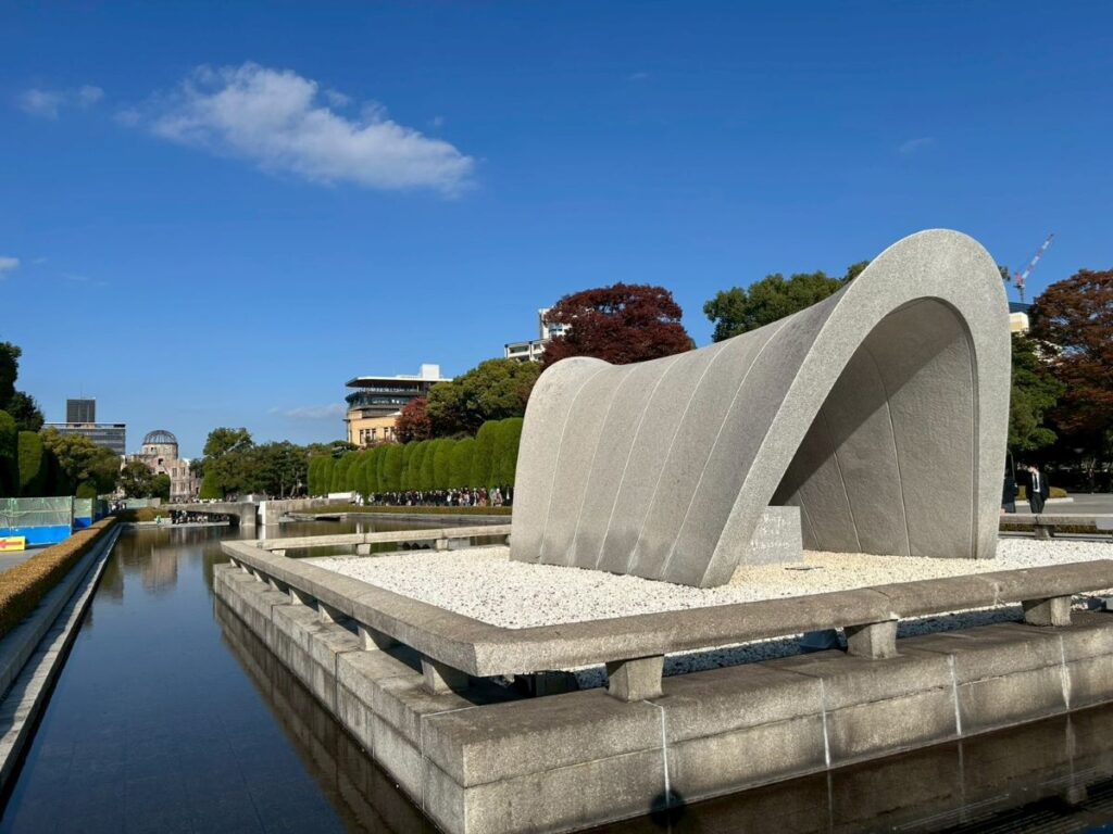 平和記念公園内にある広島平和都市記念碑は視線の先にドームが見えるように作られていて、平和の祈りが込められていることを強く感じました。