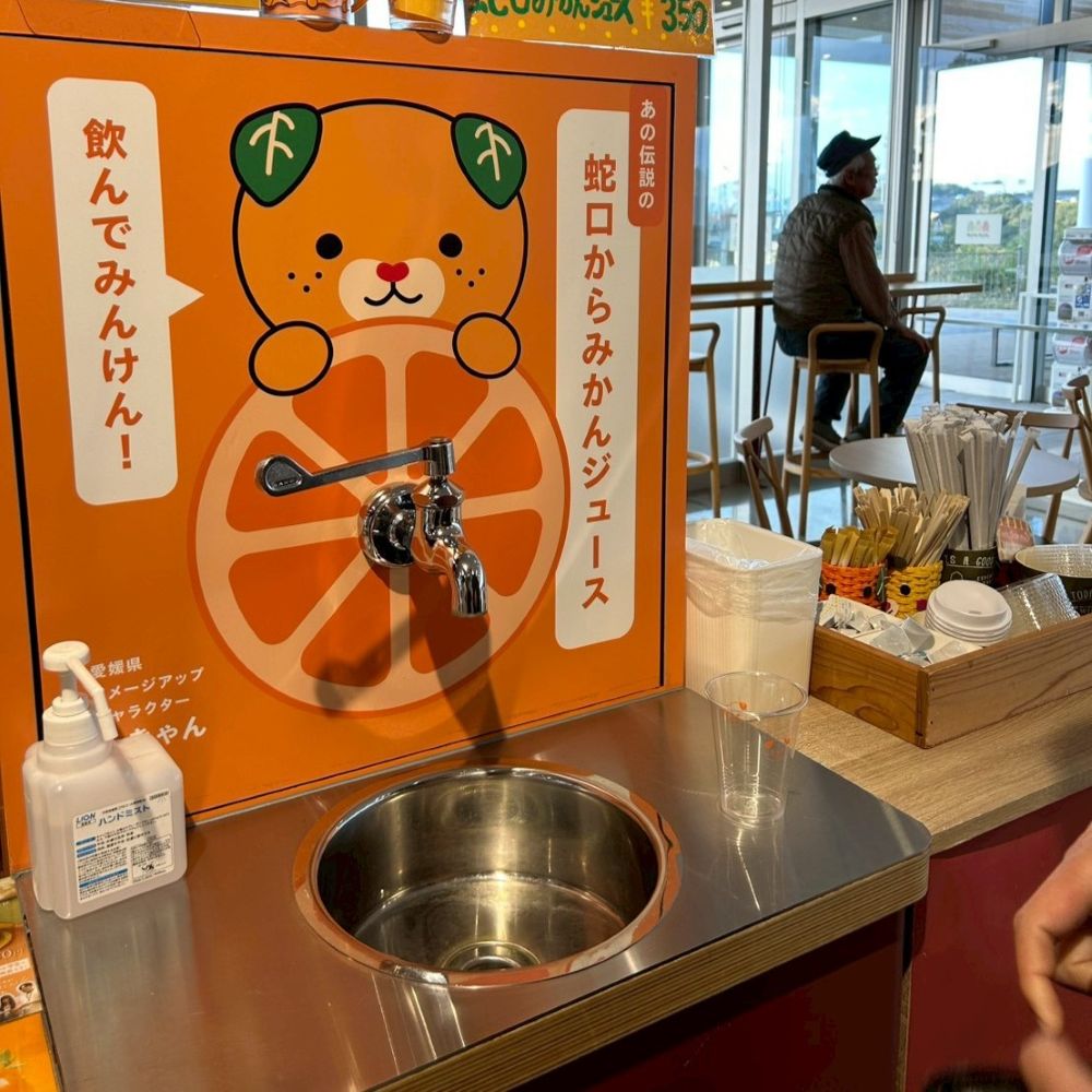 愛媛らしさを感じる「蛇口からみかんジュース」もあります。